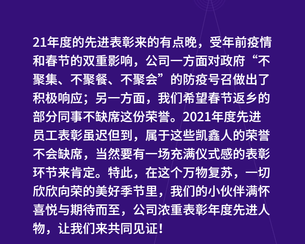 首頁 / 新聞資訊 / 公司新聞 / 快來pick年度先進(jìn)“凱鑫人”!